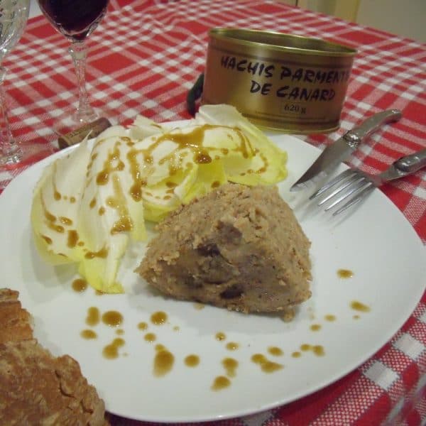 Ingrédients : Peau et viande de canard confite 50%, purée de pomme de terre, patates douces, cèpes 4%, sel, poivre.